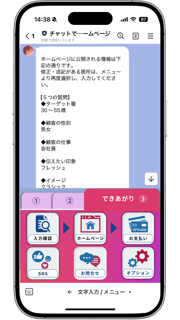 LINEでチャットするだけ、専門知識要らず!チャットするだけで、あなたのホームページが完成します。
