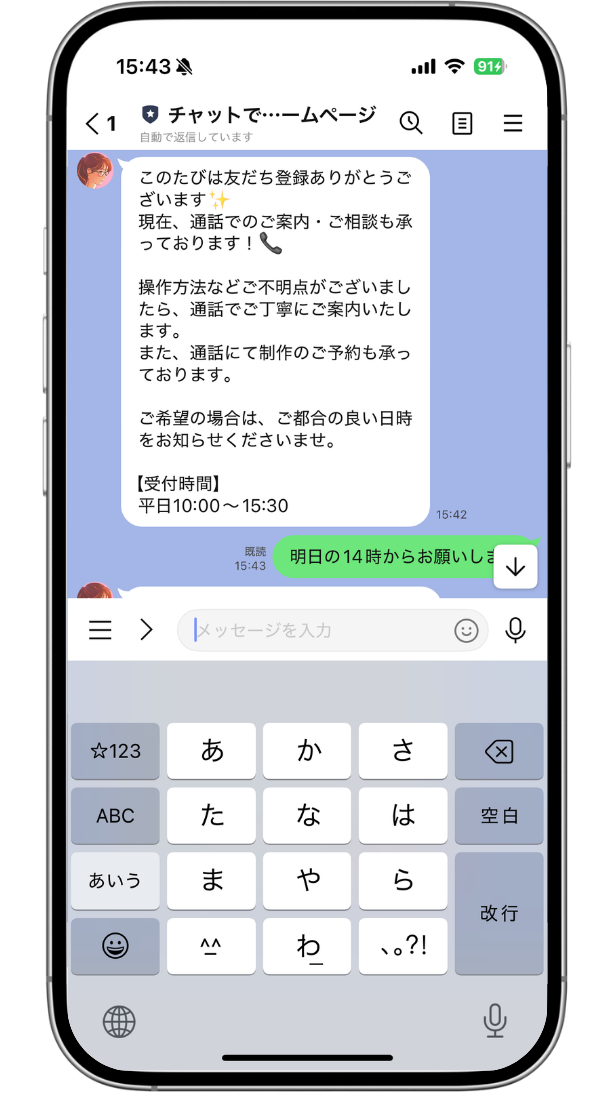 オペレーターから通話のご希望日時を伺うメッセージが届くので、返信