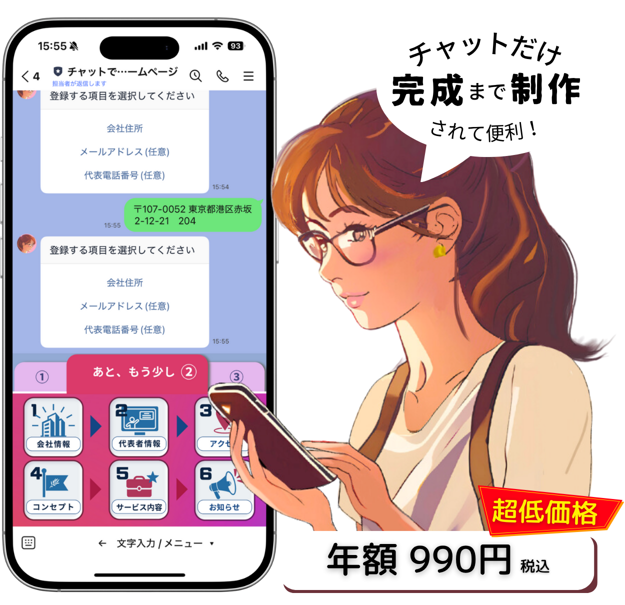 LINEでチャットするだけ、専門知識要らず!チャットするだけで、あなたのホームページが完成します。